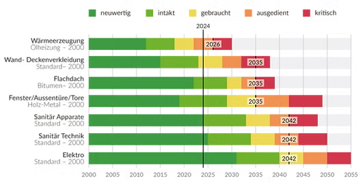 Das zertifiziertes Risikomodell, gestützt auf langjährige Erfahrung und empirische Daten, wurde unter anderem von der Universität St. Gallen validiert. Es bietet zuverlässige Indikatoren zur Gebrauchstauglichkeit einzelner Bauteile basierend auf deren Alter.